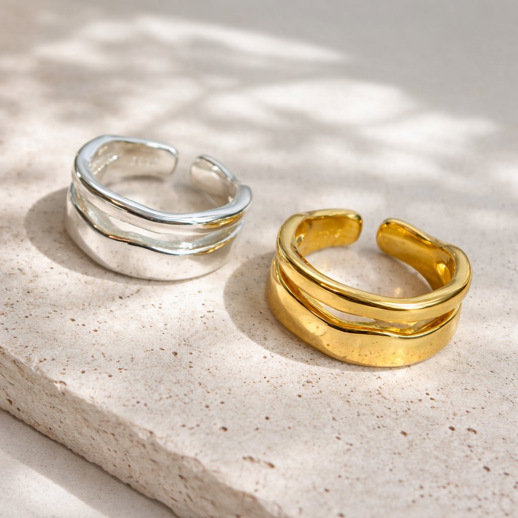 太さの違う2本のラインが指先にマッチし、シンプルながらも印象的なデザインで手元を華やかに演出してくれます。