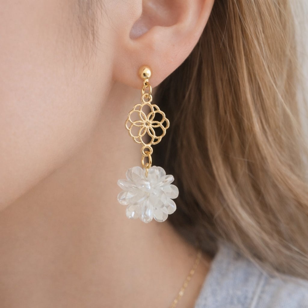 繊細なお花のモチーフが耳元で揺れ動き、さりげなくおしゃれを演出してくれます。