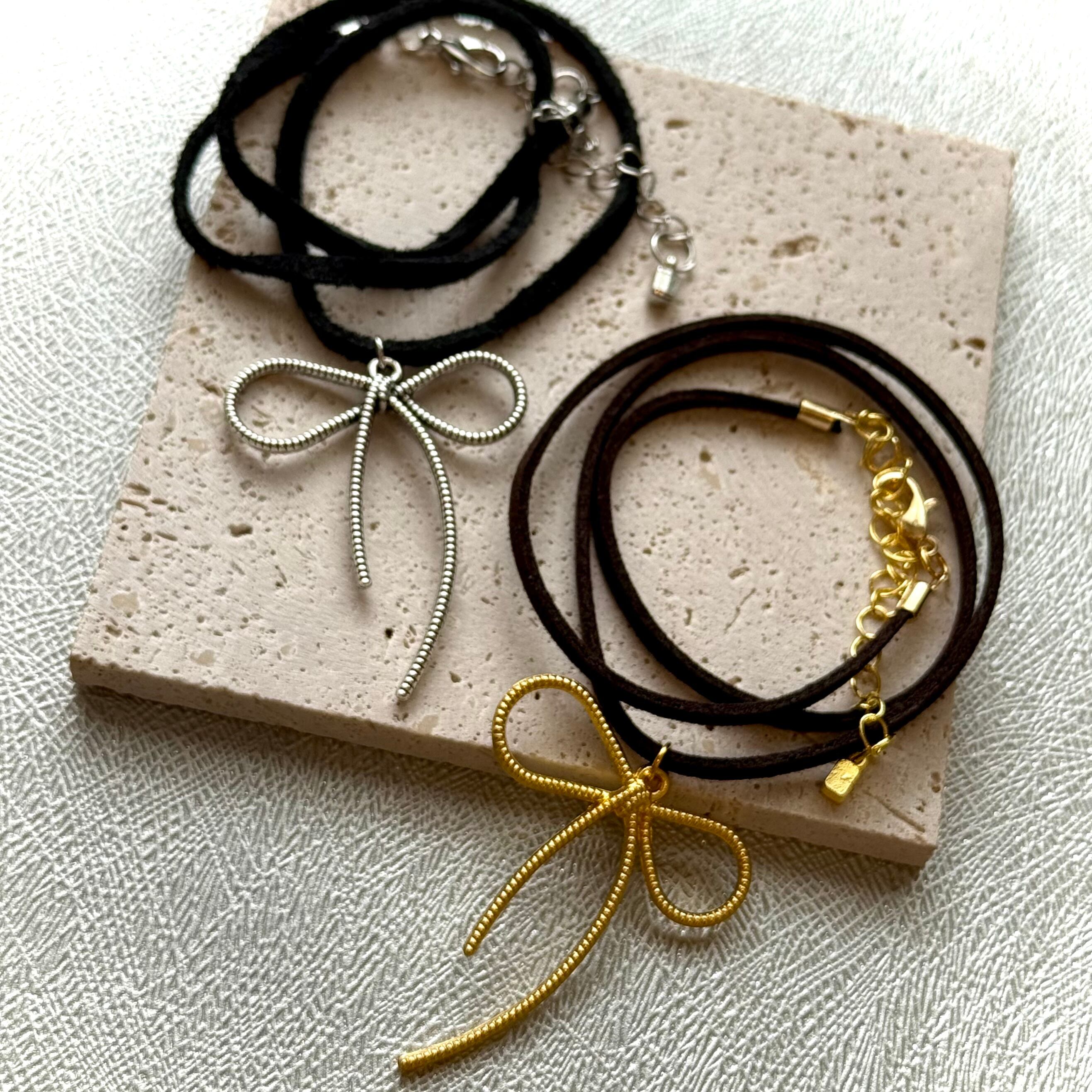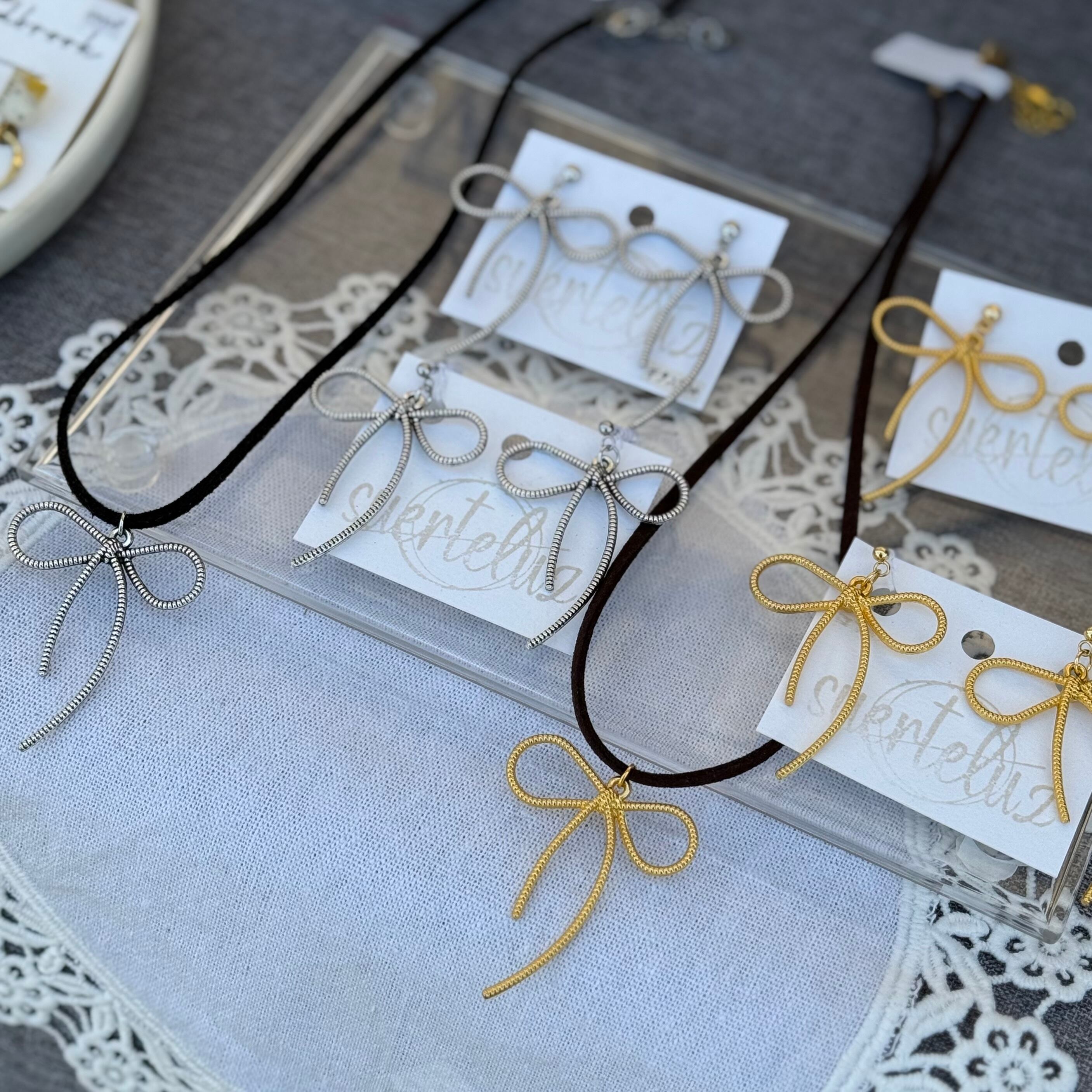 同じリボンモチーフのピアス/イヤリングとセットで着用いただけます。