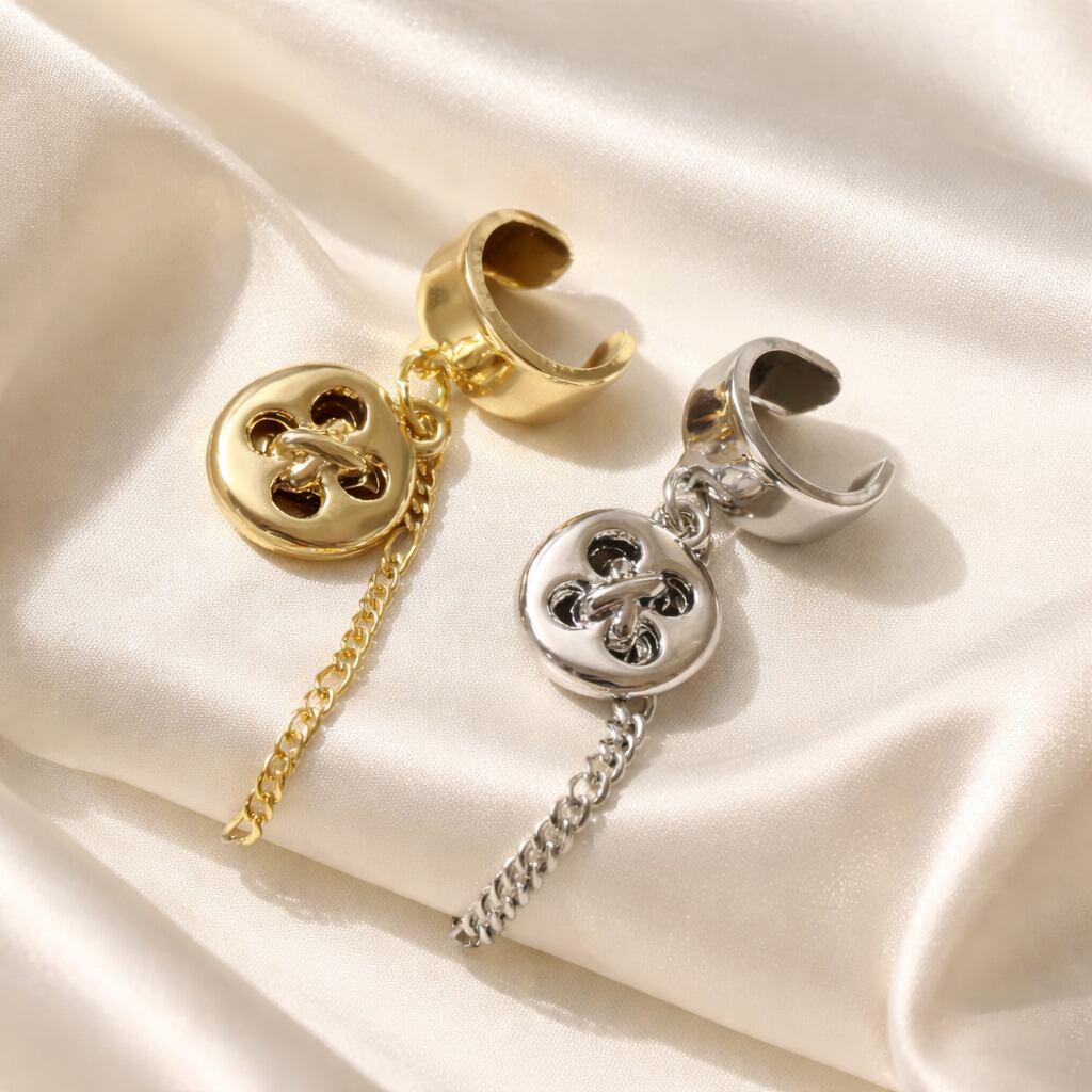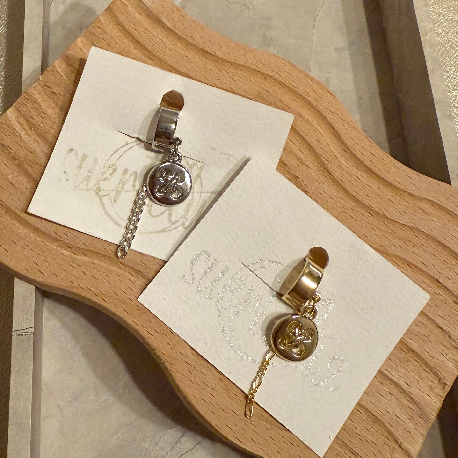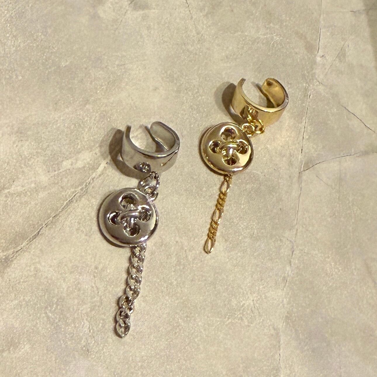 ボタンチャームをあしらったイヤーカフは、耳元にさりげない遊び心と可愛らしさを加えてくれます。