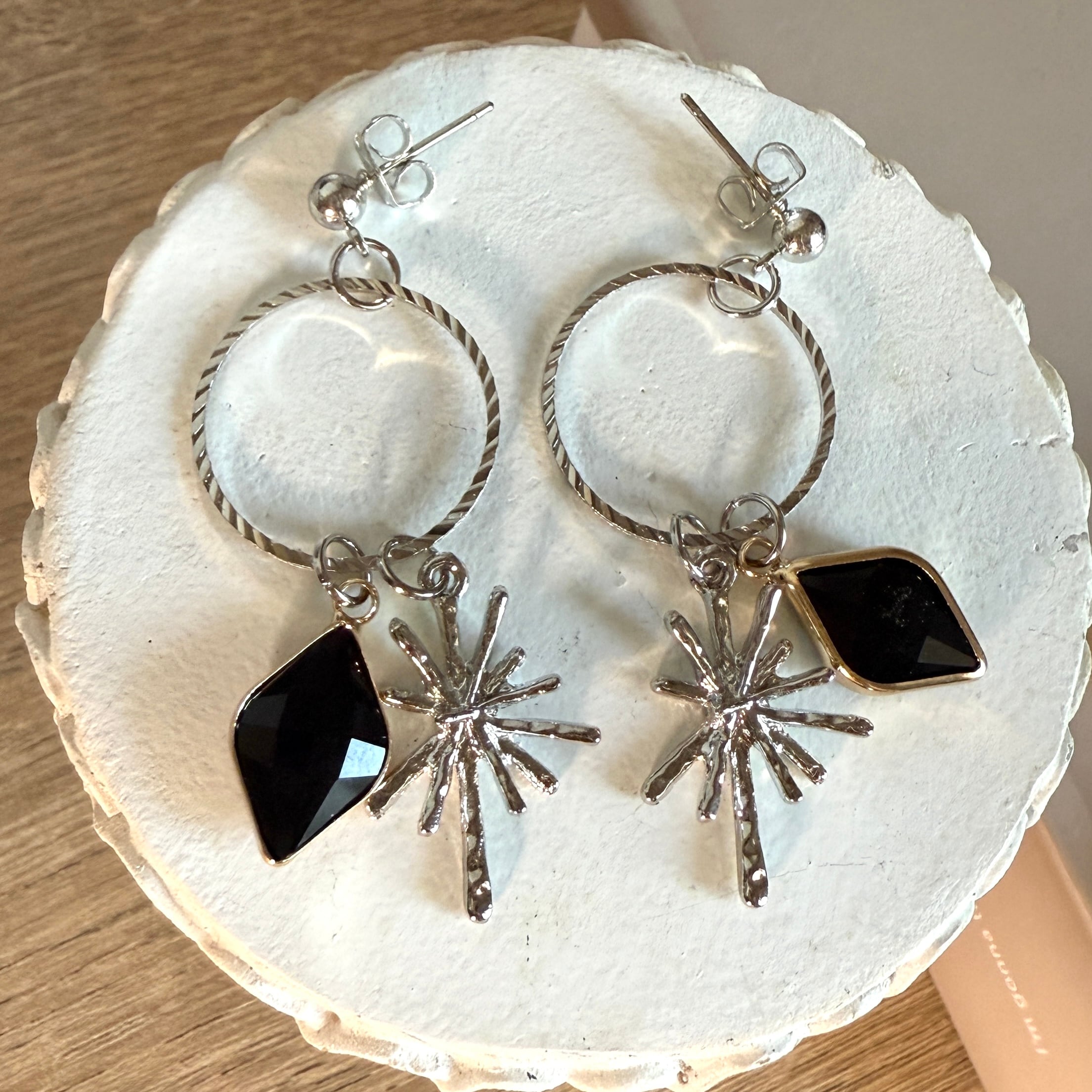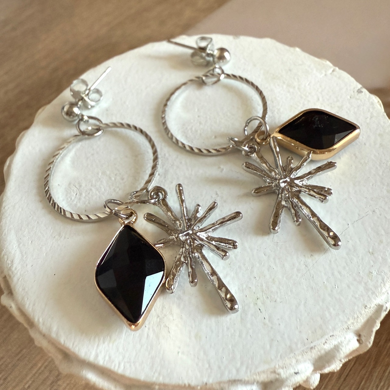 − 華やかさと輝きを身にまとった 花芯とダイヤパーツのラウンドピアス −