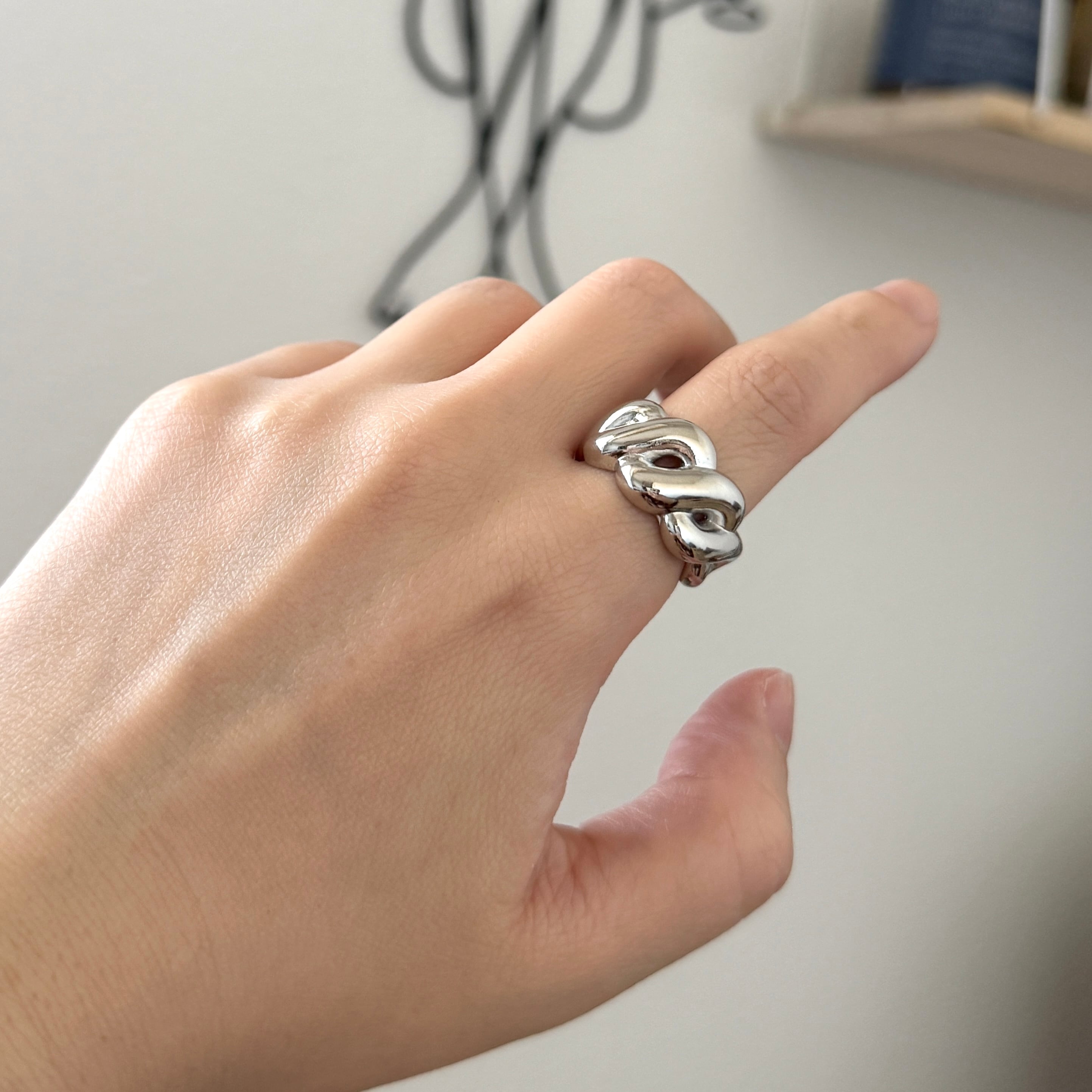 流れるようなラインが指を美しく彩り、手元に上品な印象を与えてくれるsilver925リング。