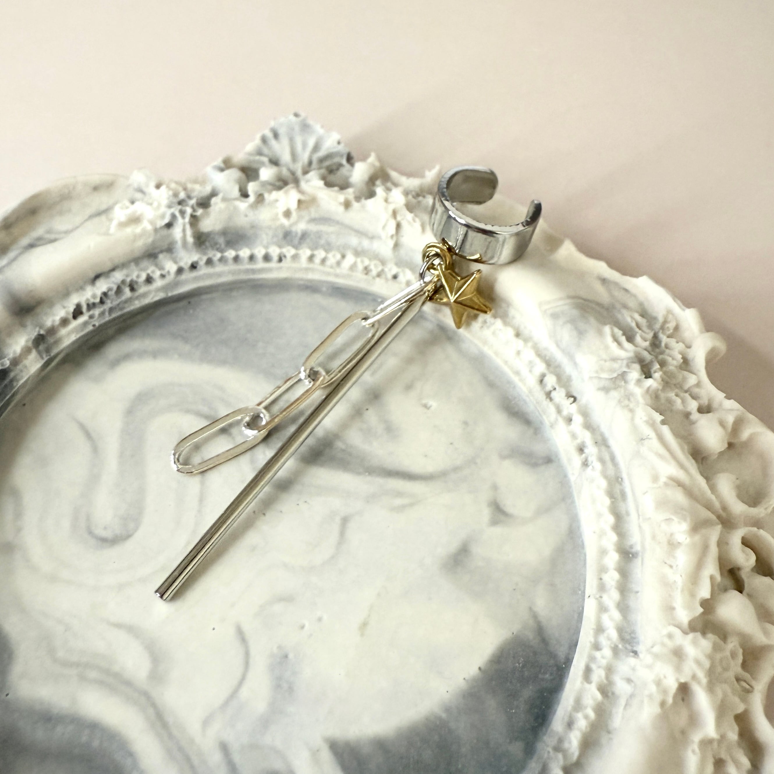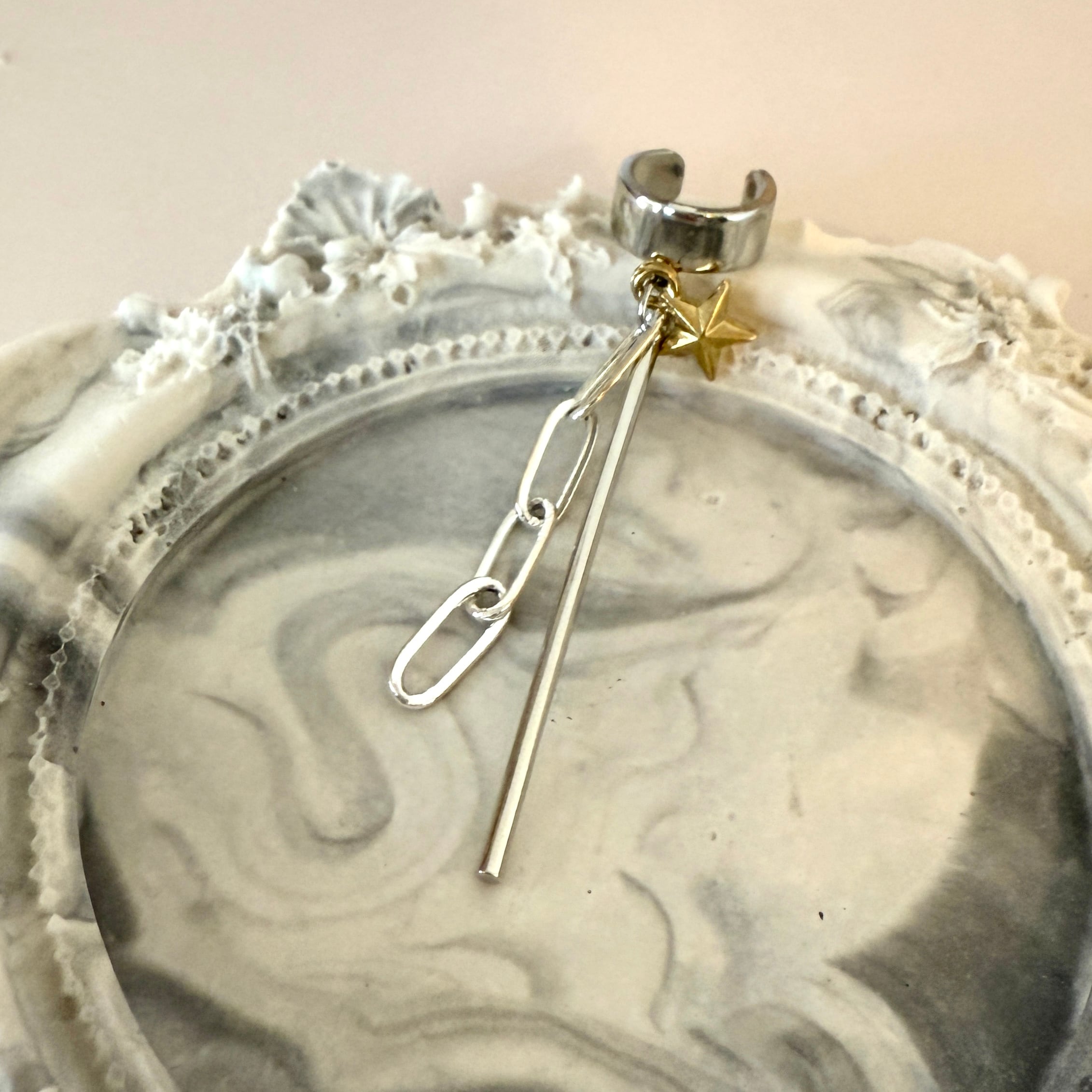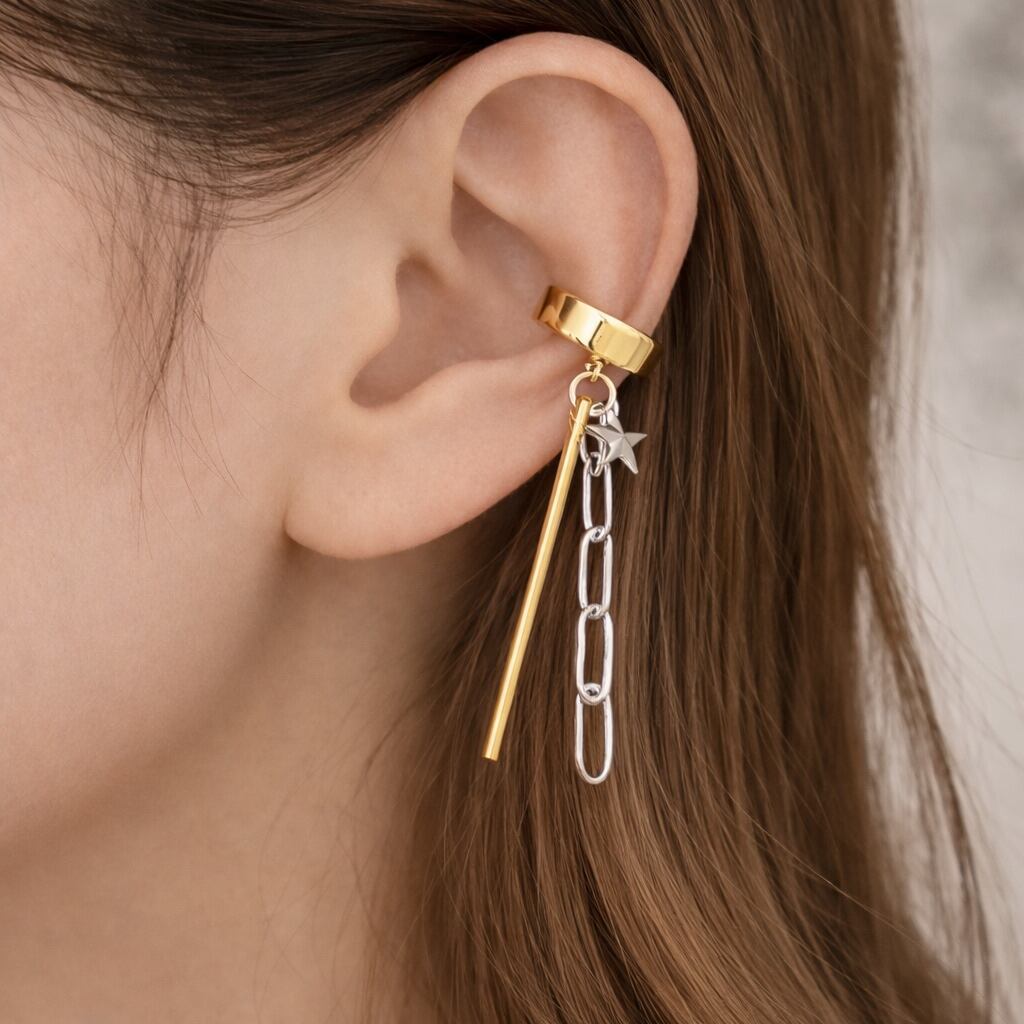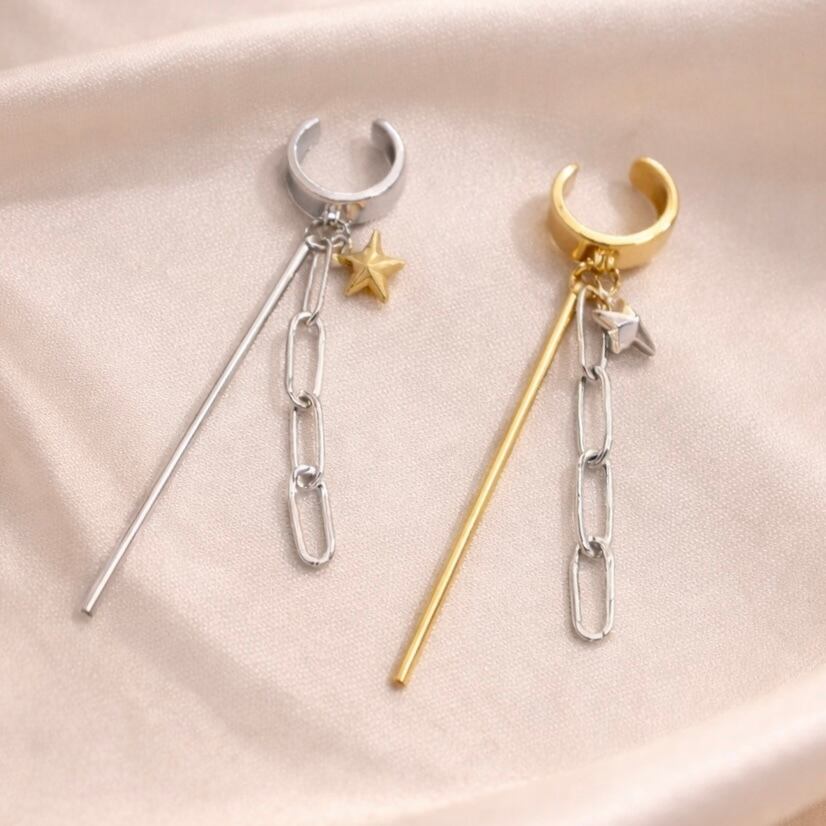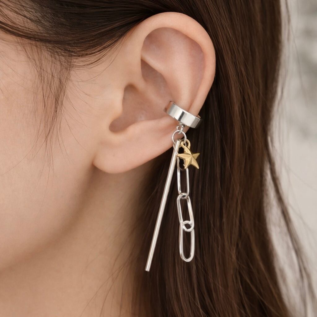 華やかなチェーンデザインが耳元を引き立て、スタイリッシュな印象を与えるsilver925のチェーンイヤーカフ。