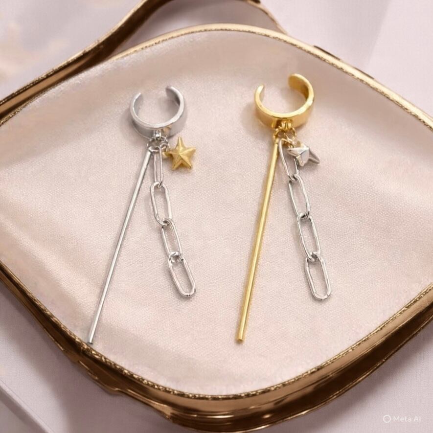 軽やかな着け心地で、日常のコーディネートに自然に溶け込み、さりげなく揺れるゴールドの小さな星が耳元にアクセントを加えてくれます。