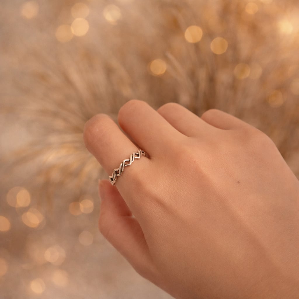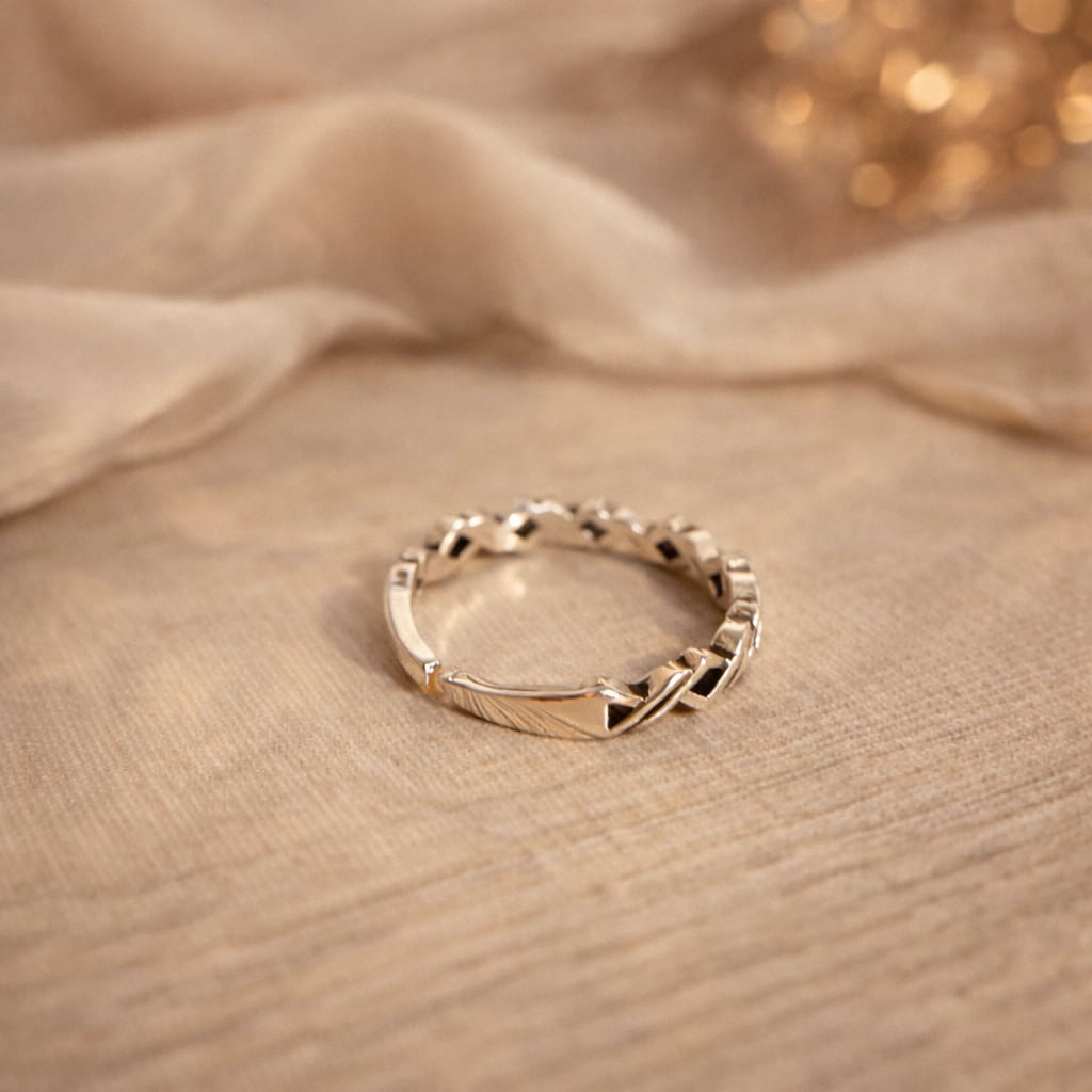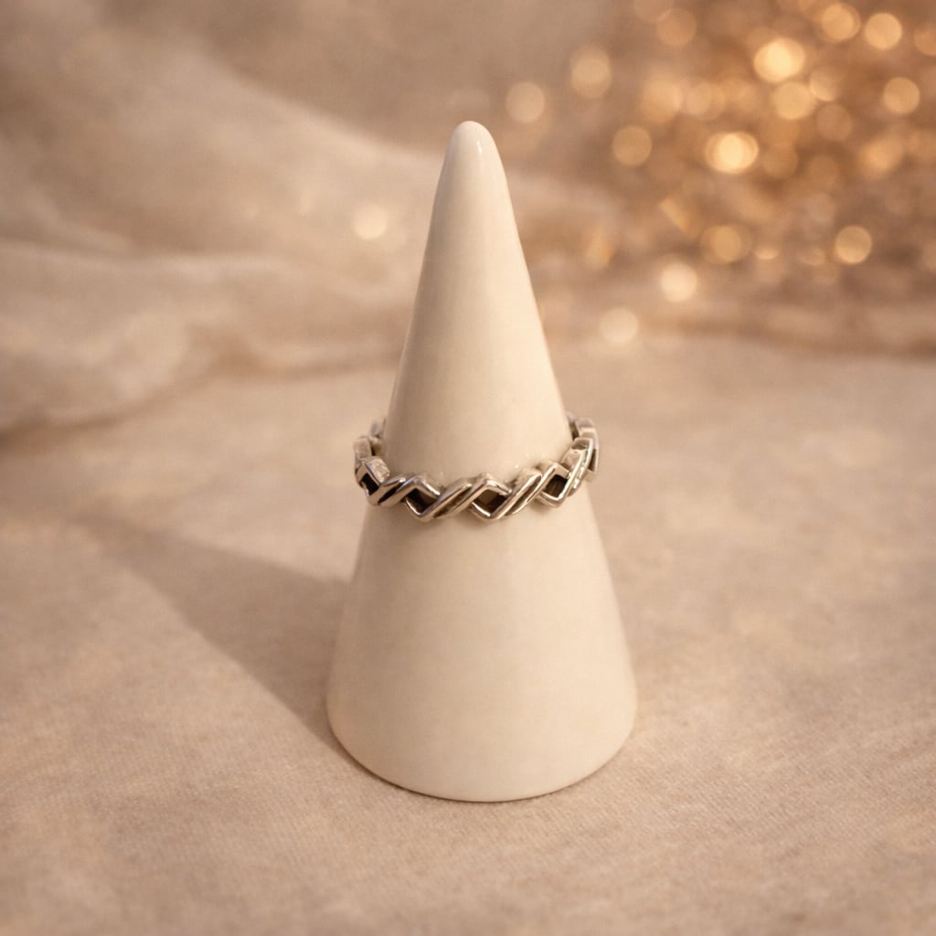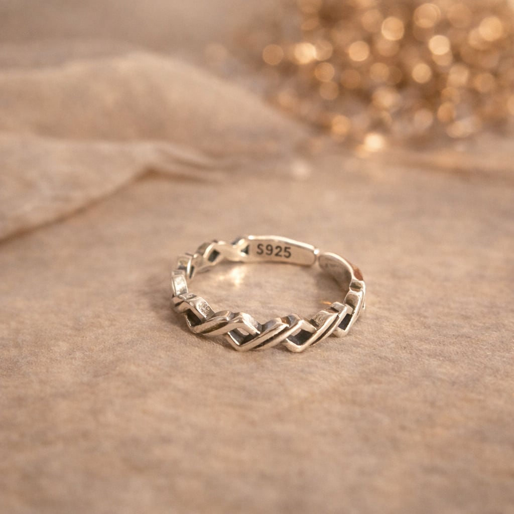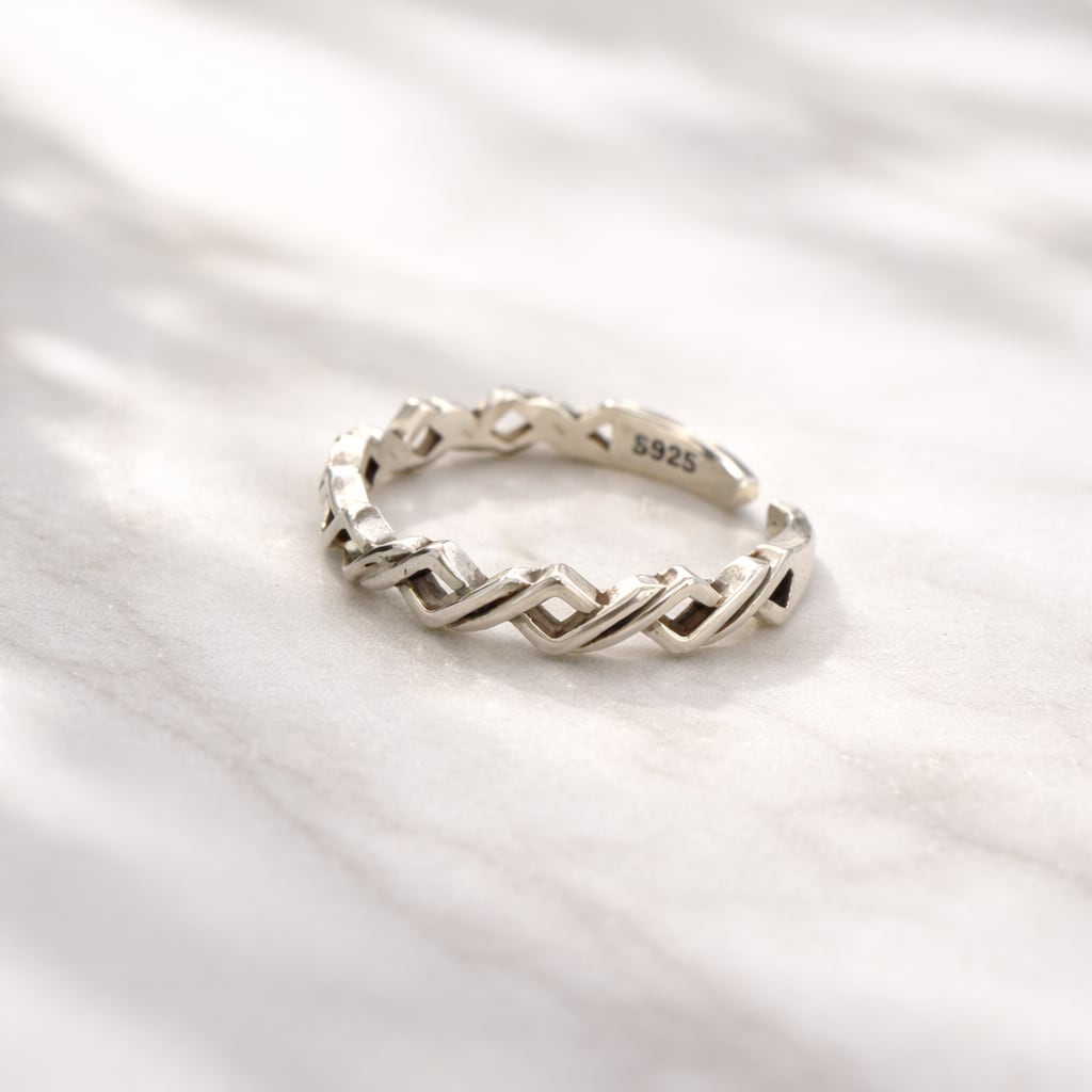 繊細に編み込まれたようなデザインが目を惹く、上品なsilver925リング。