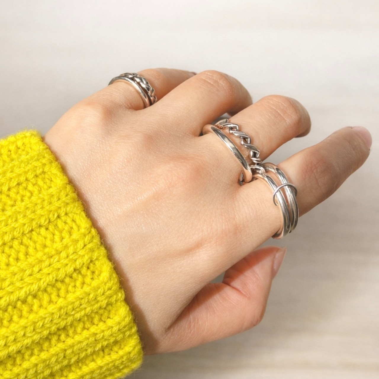 さりげない立体感が指元にニュアンスを与え、シンプルなのにしっかり存在感を放ちます。