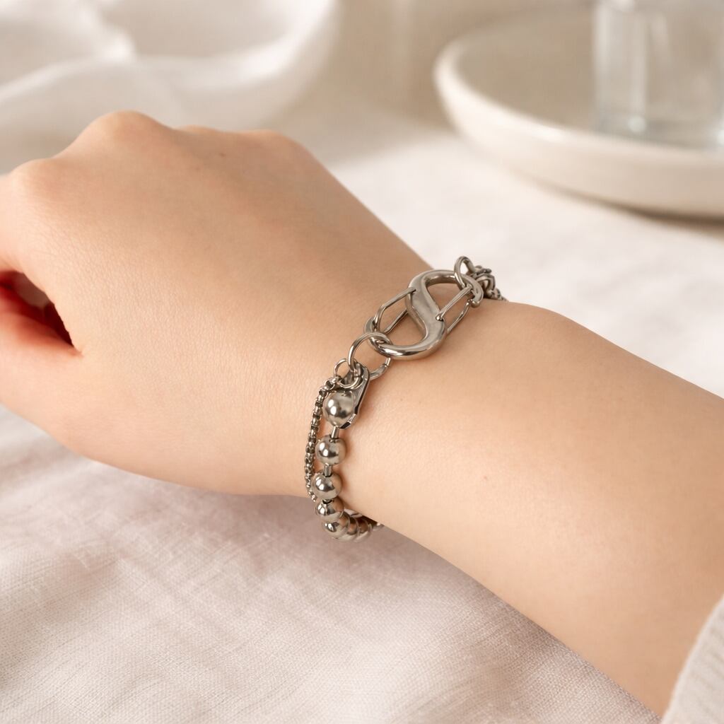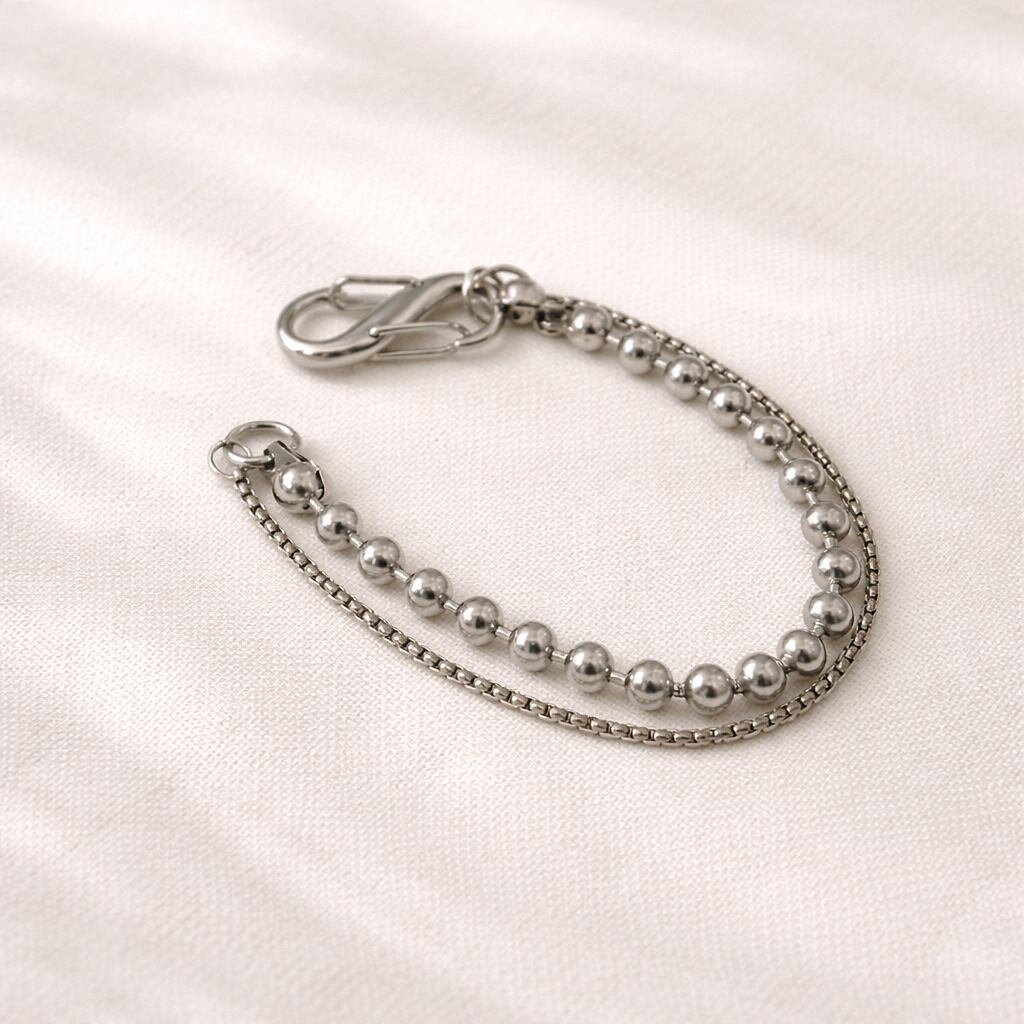 - カラビナデザインがアクセントの洗練されたクールなブレスレット -