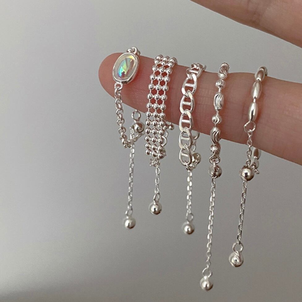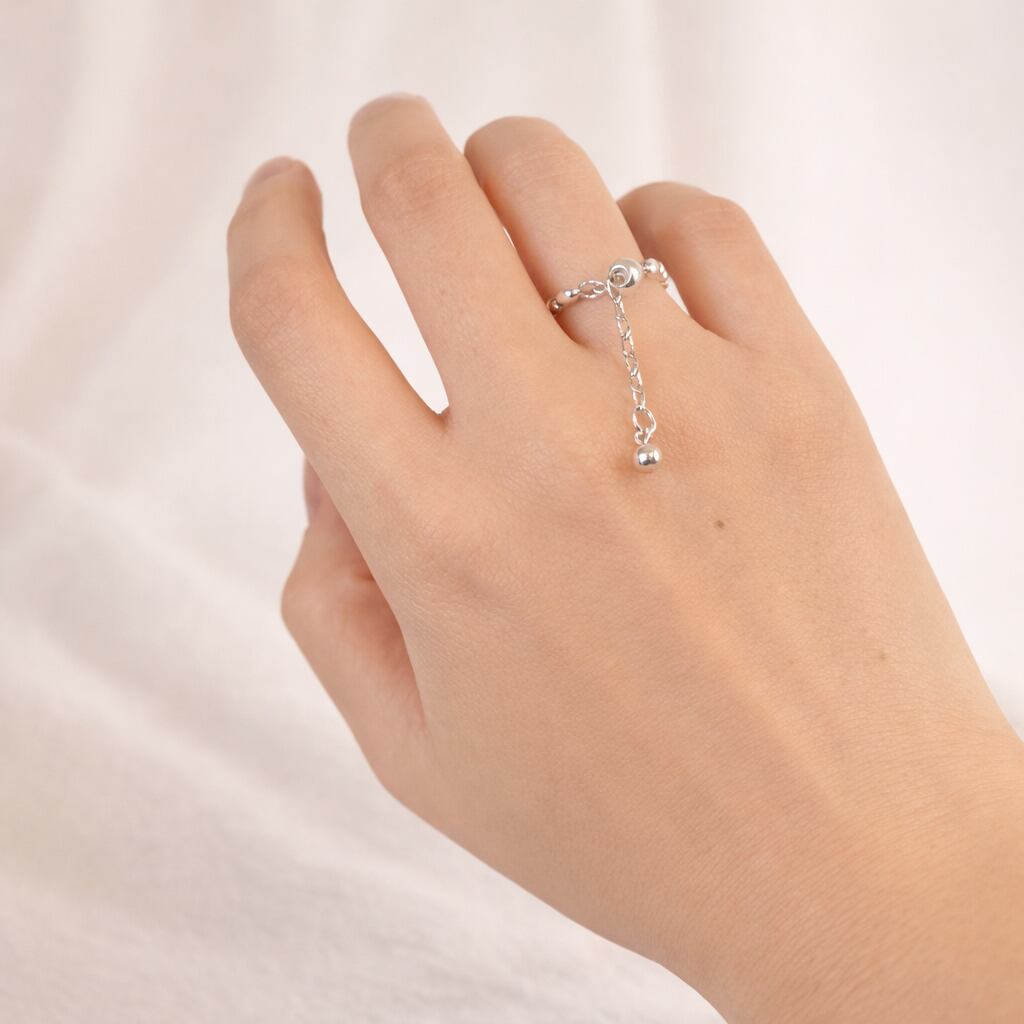 - 揺れるチェーンが目を惹く、オーバル型ボールチェーンの上品silver925 ring -