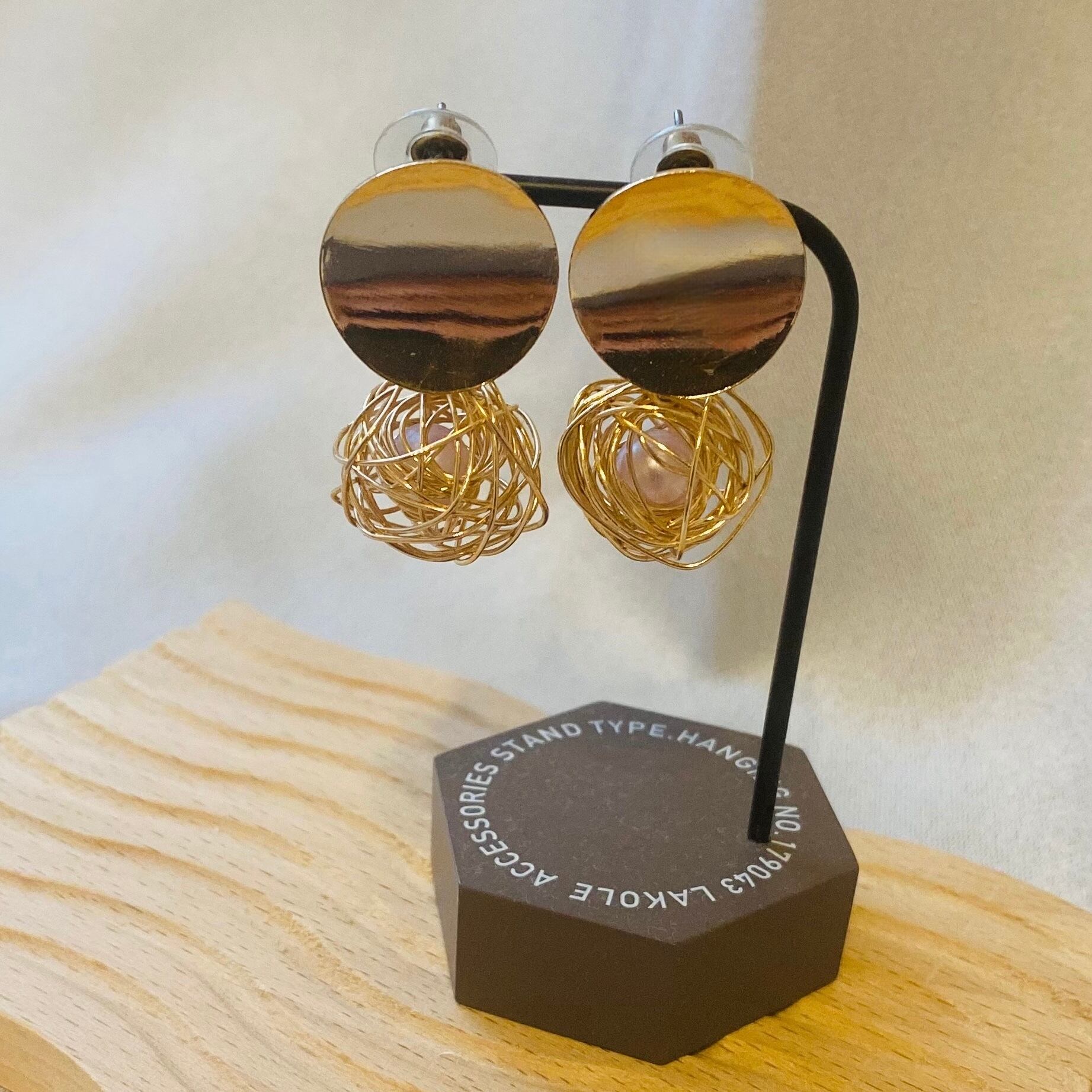 オフィスやパーティーなどにも合わせられるオシャレなデザインピアスです。